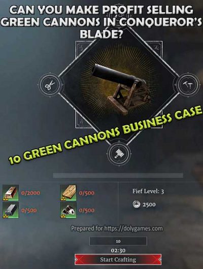 In this Conqueror’s Blade blog post I am presenting the business case for Green Cannons to show if they are interesting or not to craft and sell for profit.
