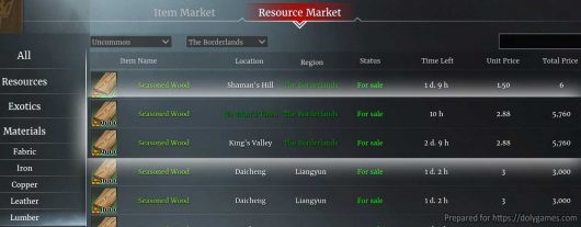 Also let’s take cheap/low prices for these as sometimes players can gather more resources than they manage to sell.