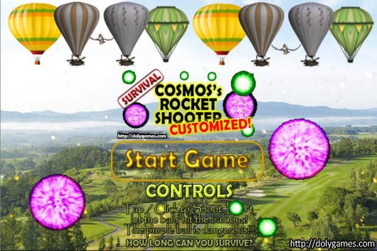 Controls: Tap or Click to shoot. Don’t let the energy balls hit the balloons! Big Energy Balls hurt!!!