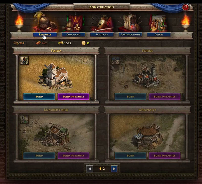 There are a lot of slots to build resource buildings and, even after building, there are many levels of upgrades. This means the player can get higher and higher amount of automatically generated resources every day which helps greatly to build new buildings, upgrade and recruit military units.